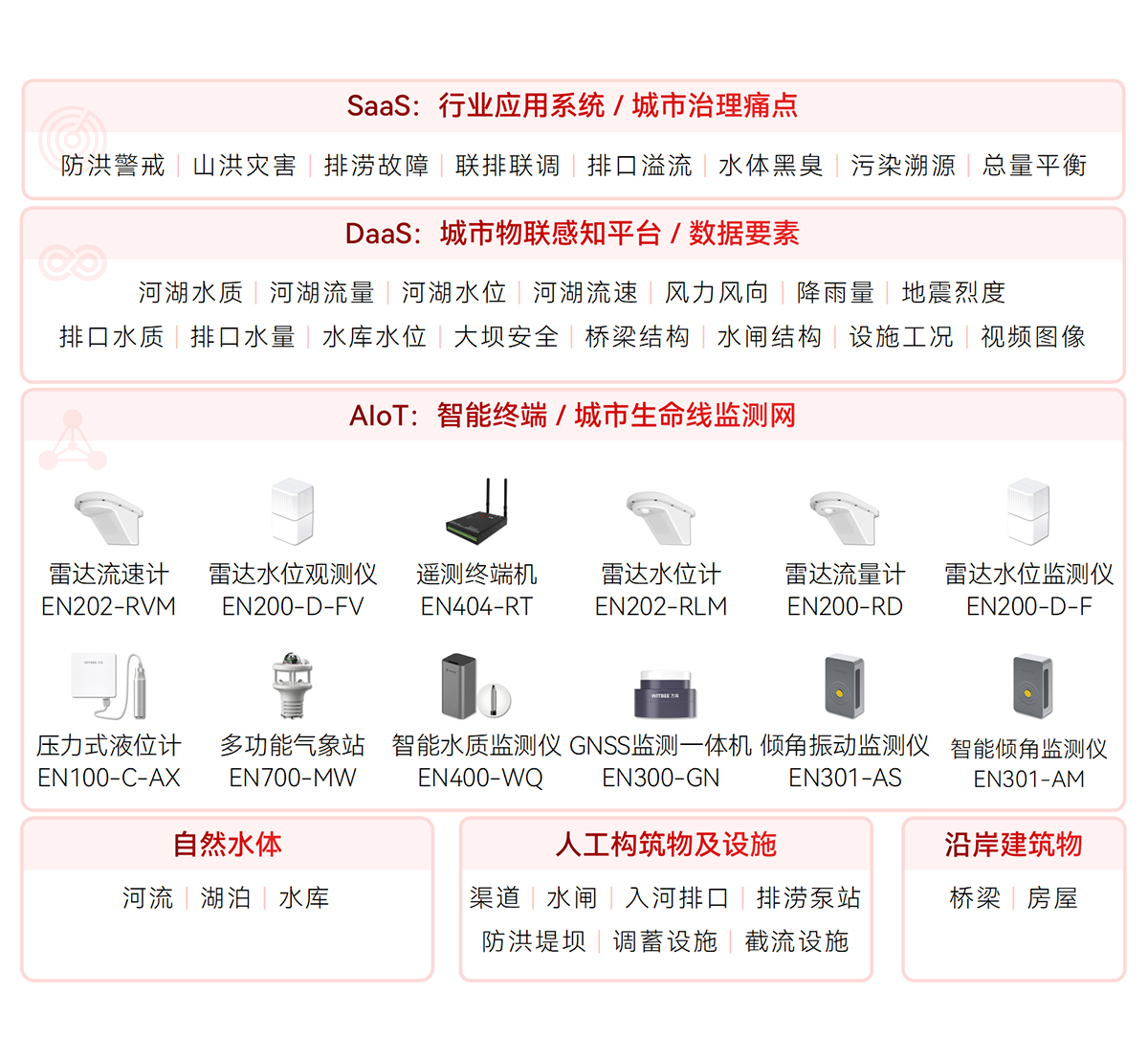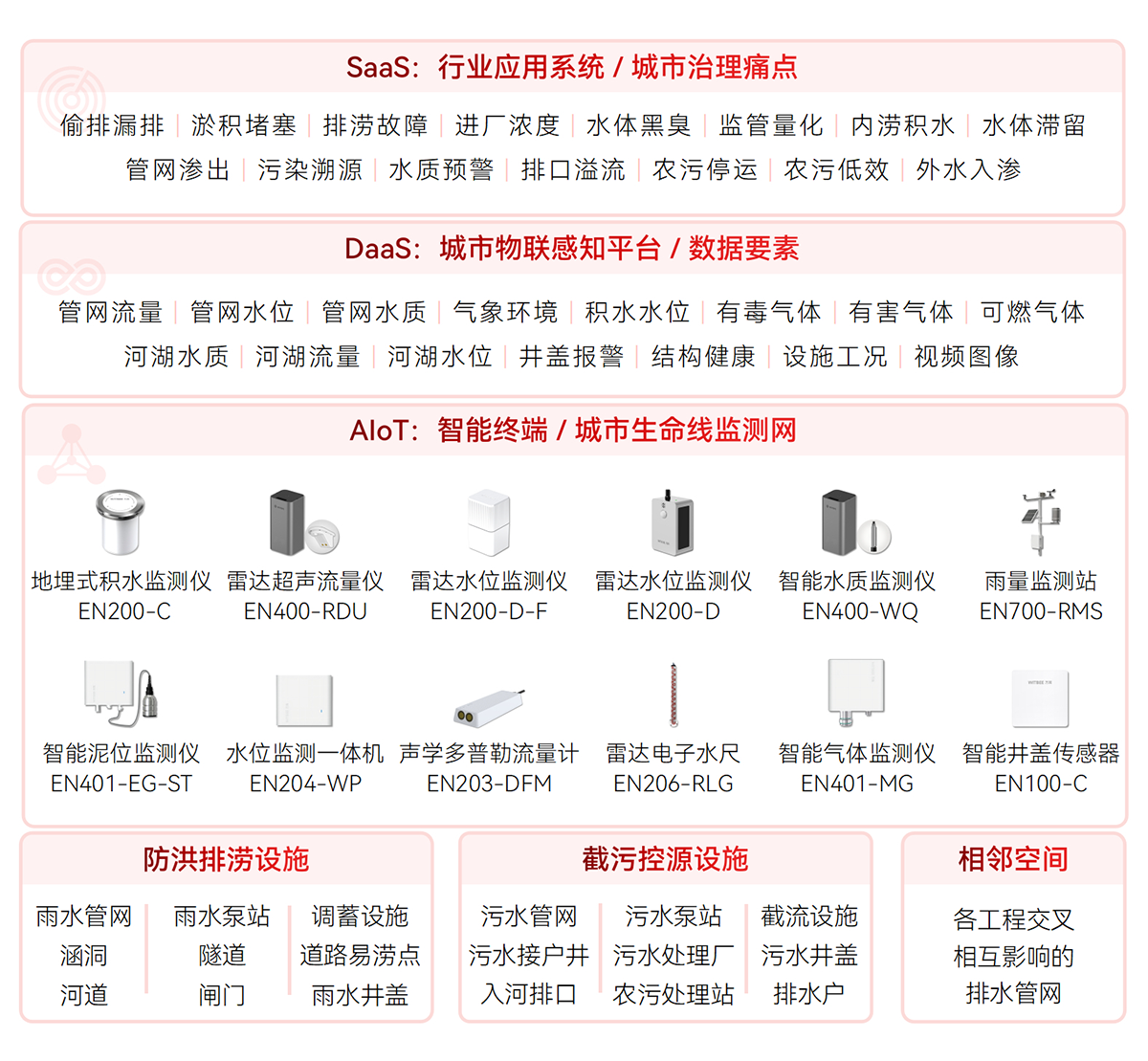 對排水設(shè)施(雨污水管網(wǎng)、窨井蓋、截流泵站、提升泵站、抽水泵站、農(nóng)村污水處理站、溢流井、排水井、污水處理廠、調(diào)蓄設(shè)施等)關(guān)鍵節(jié)點、易澇積水點,河湖水位、流速,管網(wǎng)液位、流速、水質(zhì),內(nèi)澇積水等指標(biāo)進行實時數(shù)據(jù)監(jiān)測,形成設(shè)施完整、拓?fù)淝逦⑽恢脺?zhǔn)確的排水設(shè)施“一張圖”,為排水空間規(guī)劃、設(shè)計、排水設(shè)施改造提供決策支持。